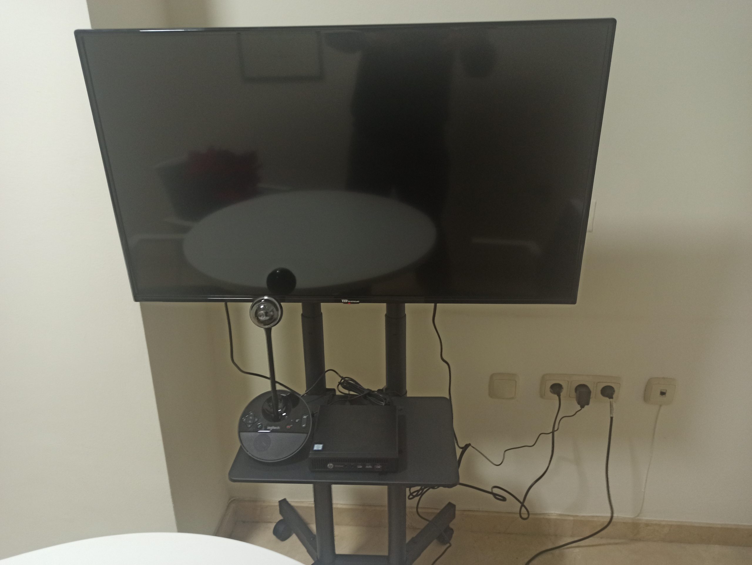 En nuestro despacho optamos por una televisión TD Systems – Smart TV de 32 pulgadas, relativamente económica y sobradamente adecuada para realizar videoconferencias, al objeto de situarnos lo más ampliamente ante nuestros interlocutores, y con un sistema de sonido bastante adecuado. Este dispositivo ronda los 200€